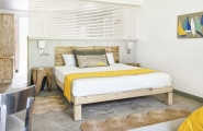 Ces chambres de 35 m2 à l’atmosphère balnéaire, au design épuré, aux teintes naturelles avec des touches de jaune ensoleillé, sont situées dans de charmants bungalows traditionnels, d’un ou de deux étages, aux toits de chaume.